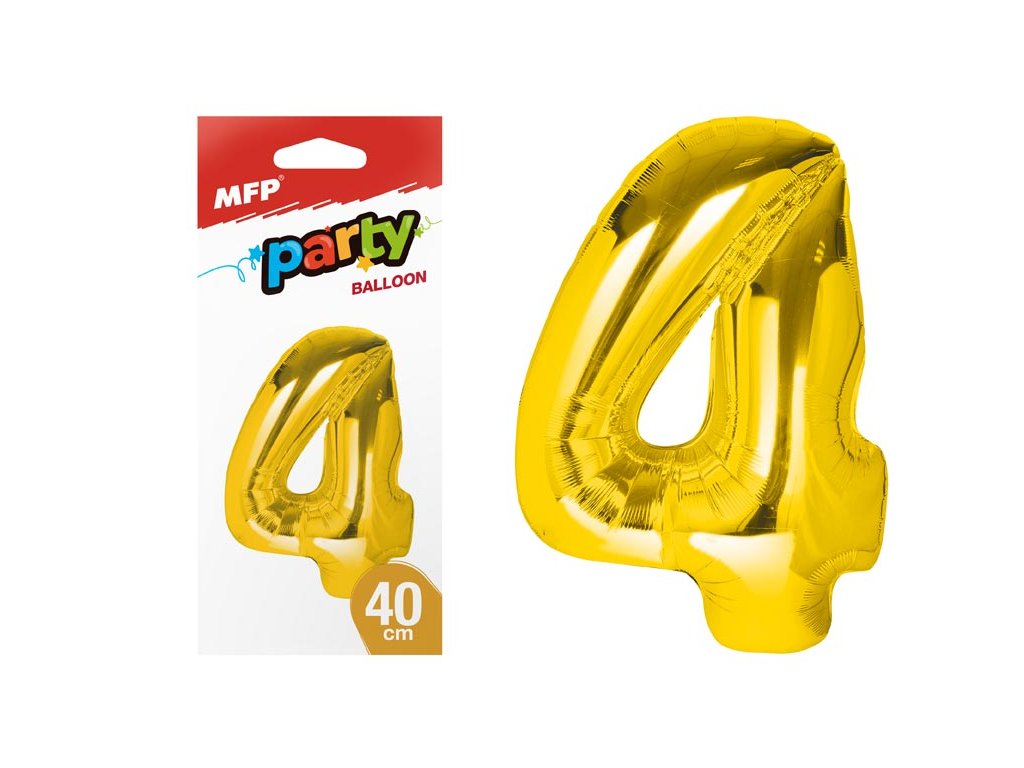 Nafukovací fóliový balónik v tvare čísla 4 v zlatej farbe. Hitom posledných rokov sú obľúbené balóniky v tvare číslic, ktoré oživia celú narodeninovú oslavu a určite potešia oslávenca. Narodeninová oslava sa môže začať! Balónik je vyrobený zo striebornej fólie. Na hornej strane balónika sú očká na priviazanie. Výška balónika: 40 cm BALENIE OBSAHUJE: -balónik -brčko na nafukovanie -návod NÁVOD NA NAFÚKANIE BALÓNIKA: 1. vybaľte balónik a plastové brčko z obalu 2. zasuňte brčko do otvoru na nafukovanie, ktorý je umiestnený na dolnej strane balónika 3. fúkaním cez brčko nafúknete balónik 4. opatrne vytiahnite brčko z balónika (systém je navrhnutý tak, že nemusíte ústie balónika zaväzovať) 5. na vyfúknutie balónika zasuňte brčko opäť do otvoru a tlačte na balónik VAROVANIE: Vhodné pre deti od 8 rokov. Deti by sa mohli prasknutými alebo vyfúknutými balónikmi udusiť alebo zaškrtiť. Používajte ich len pod dozorom dospelej osoby. Dospelá osoba sa po nafúknutí balóna musí presvedčiť, že ho používajú deti bezpečne. Vyfúknuté balóniky držte mimo dosahu detí a prasknuté ihneď zlikvidujte. K nafúknutiu balónika používajte hustilku (pumpu). Nepribližujte balónik k očiam a k tvári. Pri prasknutí môže balónik spôsobiť zranenie. Je vyrobený z prírodného kaučuku, latexu. Je určený k dekoratívnym cieľom. Hrozí nebezpečenstvo vdýchnutia a prehltnutia malých čiastočiek. Uvedená cena je za 1 ks. Dodávame vo vrecúšku.Dodatočné parametre