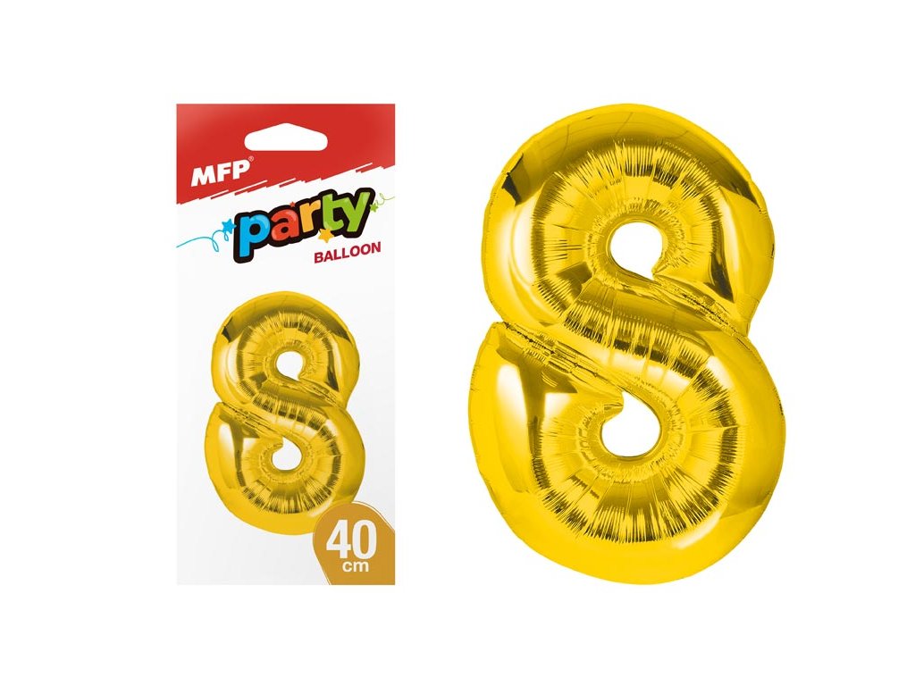 Nafukovací fóliový balónik v tvare čísla 8 v zlatej farbe. Hitom posledných rokov sú obľúbené balóniky v tvare číslic, ktoré oživia celú narodeninovú oslavu a určite potešia oslávenca. Narodeninová oslava sa môže začať! Balónik je vyrobený zo striebornej fólie. Na hornej strane balónika sú očká na priviazanie. Výška balónika: 40 cm BALENIE OBSAHUJE: -balónik -brčko na nafukovanie -návod NÁVOD NA NAFÚKANIE BALÓNIKA: 1. vybaľte balónik a plastové brčko z obalu 2. zasuňte brčko do otvoru na nafukovanie, ktorý je umiestnený na dolnej strane balónika 3. fúkaním cez brčko nafúknete balónik 4. opatrne vytiahnite brčko z balónika (systém je navrhnutý tak, že nemusíte ústie balónika zaväzovať) 5. na vyfúknutie balónika zasuňte brčko opäť do otvoru a tlačte na balónik VAROVANIE: Vhodné pre deti od 8 rokov. Deti by sa mohli prasknutými alebo vyfúknutými balónikmi udusiť alebo zaškrtiť. Používajte ich len pod dozorom dospelej osoby. Dospelá osoba sa po nafúknutí balóna musí presvedčiť, že ho používajú deti bezpečne. Vyfúknuté balóniky držte mimo dosahu detí a prasknuté ihneď zlikvidujte. K nafúknutiu balónika používajte hustilku (pumpu). Nepribližujte balónik k očiam a k tvári. Pri prasknutí môže balónik spôsobiť zranenie. Je vyrobený z prírodného kaučuku, latexu. Je určený k dekoratívnym cieľom. Hrozí nebezpečenstvo vdýchnutia a prehltnutia malých čiastočiek. Uvedená cena je za 1 ks. Dodávame vo vrecúšku.Dodatočné parametre