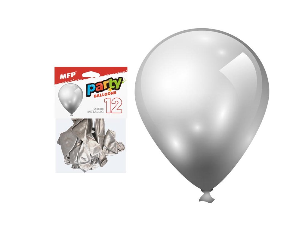 MFP 8000190 Balónik M balenie 12ks metal 26cm strieborný