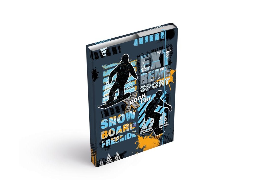 Školské dosky na zošity vo veľkosti A5 s motívom Snowboard. Nenahraditeľná súčasť výbavy každého školáka. Vďaka školským doskám budú všetky zošity a učebnice spolu a nepoškodené. Tieto dosky na zošity sú opatrené gumičkou, ktorá zabraňuje samovoľnému otvoreniu. Heft box je vyrobený z kvalitného lepenkového kartónu, potiahnutého laminátom. Preto sa môže veľmi ľahko udržiavať. Materiál: lepenkový kartón s laminátom Uvedená cena je za 1 ks.Dodatočné parametre