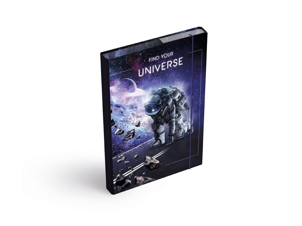 Školské dosky na zošity vo veľkosti A5 s motívom vesmíra. Nevyhnutná súčasť vybavenia každého školáka. Vďaka školským doskám budú všetky zošity a učebnice pohromade a neponičené. Tieto dosky na zošity sú zabezpečené gumou, ktorá zabraňuje samovoľnému otváraniu. Heft box je vyrobený z kvalitného lepenkového kartónu, potiahnutého laminom. Z toho dôvodu sa dá veľmi ľahko udržiavať. Materiál: lepenkový kartón s laminom Uvedená cena je za 1 ks.Dodatočné parametre