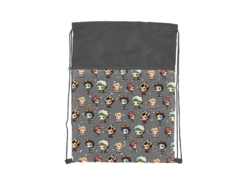 Školský vak na prezúvky so šnúrkou na stiahnutie v tmavosivej farbe s motívom anime maskotov. Na prednej strane má praktické vrecko na zips na oddelenie obuvi od ostatného oblečenia. Kúpte svojim deťom školský vak na papuče alebo oblečenie na cvičenie. Odteraz deti nemusia hľadať svoje papuče po celej šatni, majú ich na jednom mieste. POUŽITIE: Vhodné ako vrecko na prezúvky alebo vrecko na cvičebný úbor do telocvične. Vyrobené z pevného a kvalitného materiálu. Vďaka dvom sťahovacím šnúrkam sa dá vrecko dať aj na chrbát a nosiť ako batoh. Vak je ľahko umývateľný vlhkou handričkou a možno ho prať v rukách. Farba: tmavosivá Motív: anime maskoti Rozmery: 300 x 390 mm Dodávame vo vrecku. Uvedená cena je za 1 ks. Grafické symboly na údržbu textilu nájdete zde.Dodatočné parametre