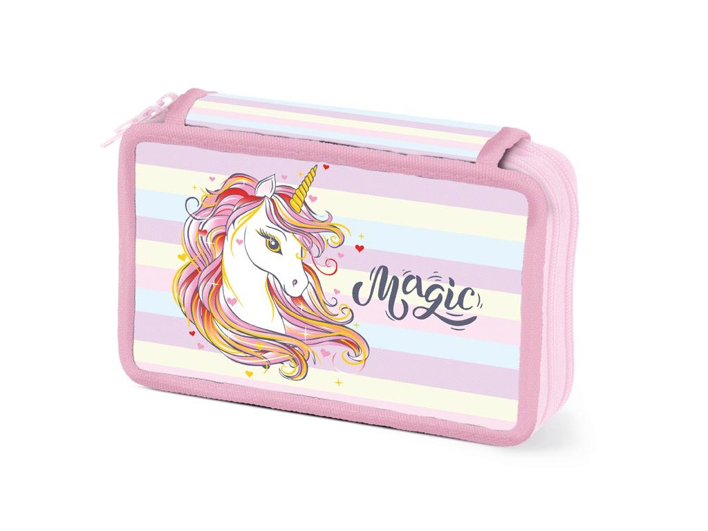 Školské dvojposchodové púzdro s dvoma chlopňami s obrázkom jednorožca. Peračník je nevyhnutná súčasť výbavy každého školáka! Peračník je bez výbavy. Veľmi ľahko sa uzatvára vďaka veľkému zipsu. Toto školské púzdro nie je vybavené. Peračník je zdravotne nezávadný a neobsahuje toxické látky. Uvedená cena je za 1 ks.Dodatočné parametre