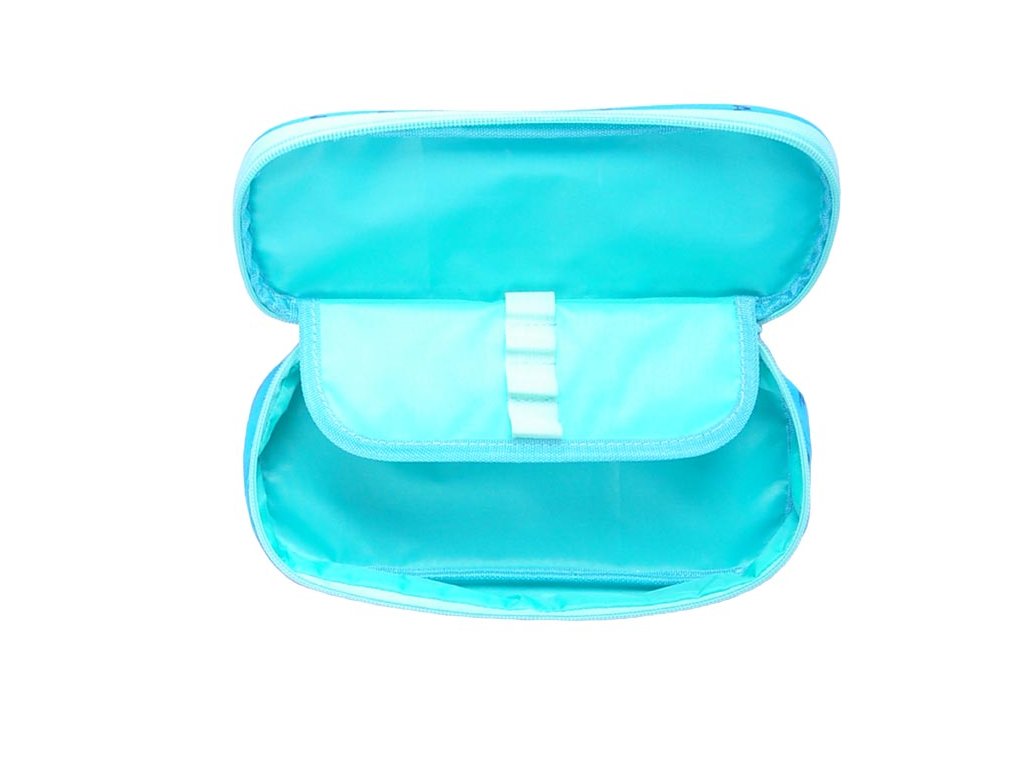Školské puzdro s chlopňou v tyrkysovej farbe s názvami miest. Je vhodným doplnkom pre študentov a starších školákov. Vo vnútri puzdra je dostatok priestoru na uloženie všetkých písacích potrieb. Veľmi ľahko sa zatvára vďaka veľkému zipsu. Toto školské puzdro nie je vybavené. Peračník je zdravotne nezávadný a neobsahuje toxické látky. Uvedená cena je za 1 ks.Dodatočné parametre