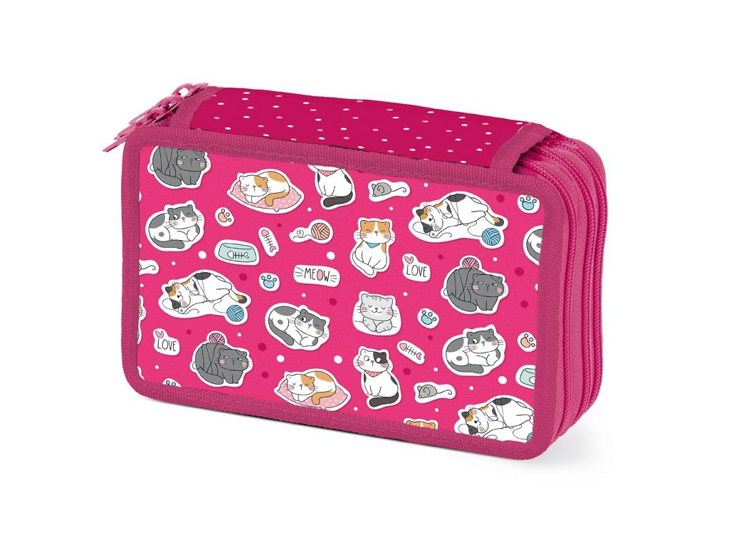 Školský trojposchodový nevybavený peračník v sýto ružovej farbe s motívom mačiek. Vďaka trom poschodiam v ňom uložíte úplne všetky písacie potreby a pomôcky ako je pravítko, guma, strúhadlo, kružítko ai. Jedno poschodie disponuje priehľadnou priehradkou na rozvrh. Veľmi ľahko sa uzatvára vďaka veľkému zipsu a je z kvalitných a odolných materiálov. Bezpochyby je nevyhnutnou súčasťou vybavenia každého školáka. - nie je vybavený - zdravotne nezávadný a neobsahuje toxické látky ODPORÚČANIA: - čistiť iba navlhčenou handričkou vo vode s trochou saponátu Uvedená cena je za 1 ks.Dodatočné parametre