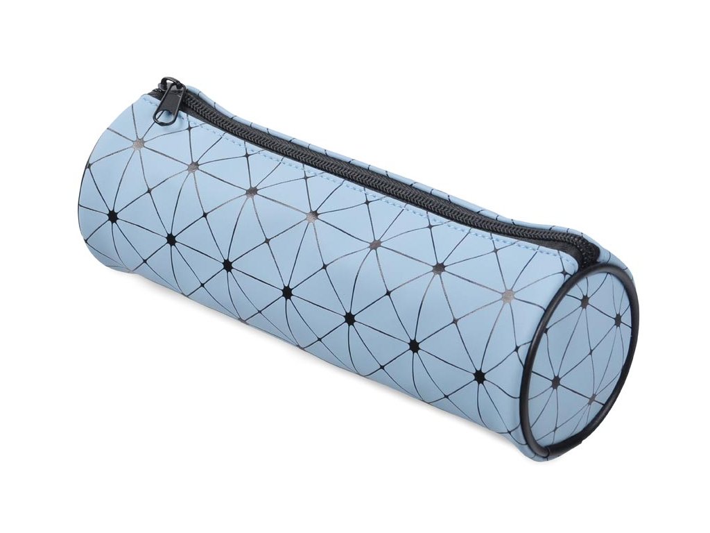 Školský peračník/etue valcového tvaru je vo svetlo modrej farbe. Na povrchu je vzor tvorený čiernymi čiarami, ktoré sa vzájomne križujú a vytvárajú geometrický motív podobný sieti alebo pavučine. V mieste, kde sa čiary pretínajú, sú malé čierne body. Peračník disponuje jedným hlavným vreckom uzatvárateľným zipsom, ktorý je čiernej farby, rovnako ako okraje peračníka. Je vhodný na uschovanie a organizáciu písacích potrieb, ako sú ceruzky, perá, gumy, strúhadlá alebo malé pravítko. Tento dizajn je moderný a štýlový, ideálny na každodenné použitie v škole alebo v kancelárii. - nie je vybavený - zdravotne nezávadný a neobsahuje toxické látky ODPORÚČANIE: - čistiť iba navlhčenou handričkou vo vode s trochou saponátu Uvedená cena je za 1 ks.Dodatočné parametre