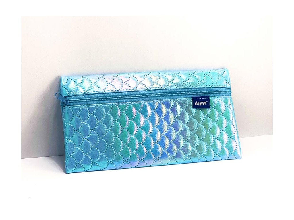Školský peračník/etue vo svetlo modrej farbe s dúhovými odleskami. Peračník je plochý, obdĺžnikového tvaru, a je vybavený svetlo modrým zipsom po celej dĺžke, čo uľahčuje prístup k uloženým veciam. Povrch peračníka je prešívaný so vzorom šupín, ktoré vytvárajú zaujímavý vzhľad. Peračník je dostatočne priestranný, aby sa do neho zmestili písacie potreby, a vďaka svojmu kompaktnému plochému tvaru sa ľahko zmestí do batohu, kabelky alebo tašky. - nie je vybavený - zdravotne nezávadný a neobsahuje toxické látky ODPORÚČANIE: - čistiť iba navlhčenou handričkou vo vode s trochou saponátu Uvedená cena je za 1 ks.Dodatočné parametre