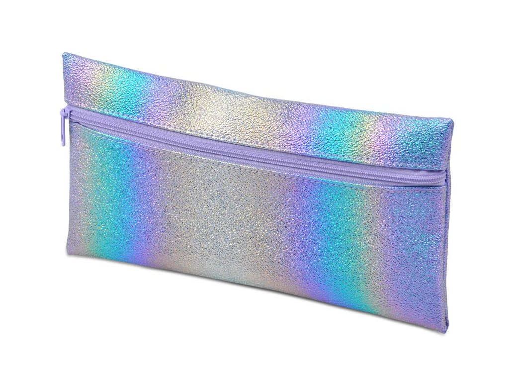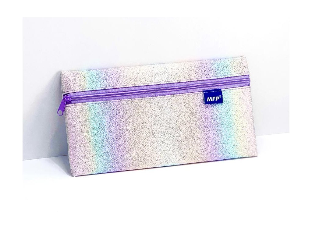 Školský peračník/etue s výrazným dúhovým povrchom, ktorý vytvára holografický efekt s rôznymi farebnými prechodmi. Zips, ktorý sa tiahne po celej šírke peračníka, je zladený s fialovými tónmi povrchu. Peračník má plochý, obdĺžnikový tvar, vďaka čomu je praktický na uloženie písacích potrieb, drobností alebo kozmetiky. - nie je vybavený - zdravotne nezávadný a neobsahuje toxické látky ODPORÚČANIE: - čistiť iba navlhčenou handričkou vo vode s trochou saponátu Uvedená cena je za 1 ks.Dodatočné parametre