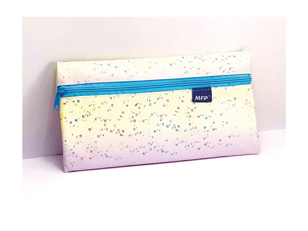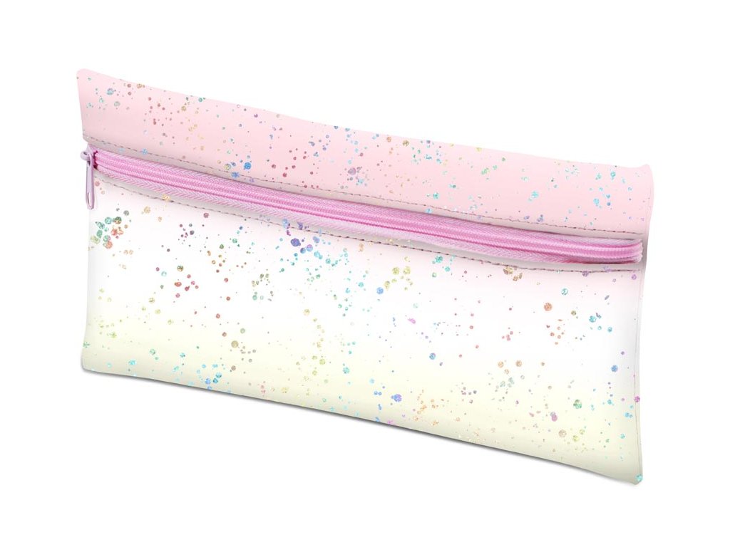Školský peračník/etue vo farbe prechádzajúcej z jemnej žltej cez bielu až po pastelovo ružovú, doplnený o lesklé farebné škvrny. Zips, ktorý sa tiahne po celej šírke peračníka, je zladený s ružovými tónmi povrchu. Peračník má plochý, obdĺžnikový tvar, vďaka čomu je praktický na uloženie písacích potrieb, drobností alebo kozmetiky. - nie je vybavený - zdravotne nezávadný a neobsahuje toxické látky ODPORÚČANIE: - čistiť iba navlhčenou handričkou vo vode s trochou saponátu Uvedená cena je za 1 ks.Dodatočné parametre