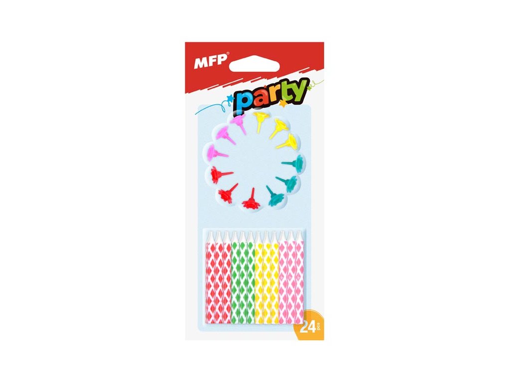 MFP 8800063 Sviečky tortové farebné 24ks+12ks stojančekov