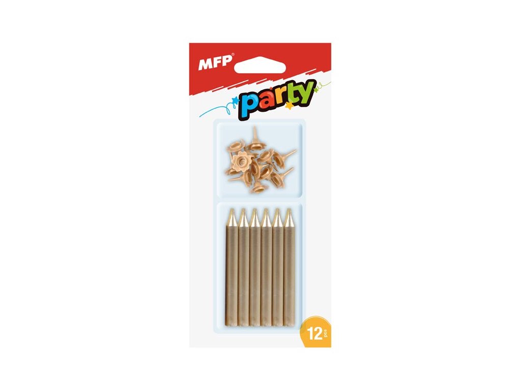 MFP 8800065 Sviečky tortové zlaté 12ks+12ks stojančekov