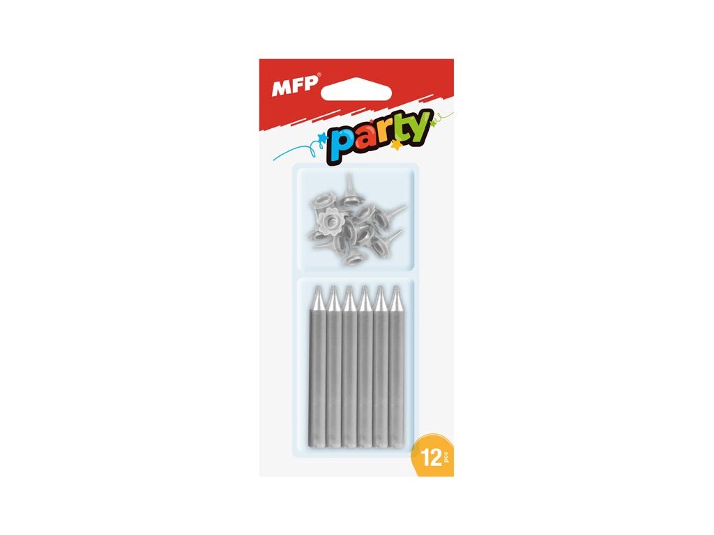 MFP 8800078 Sviečky tortové strieborné 12ks+12ks stojančekov