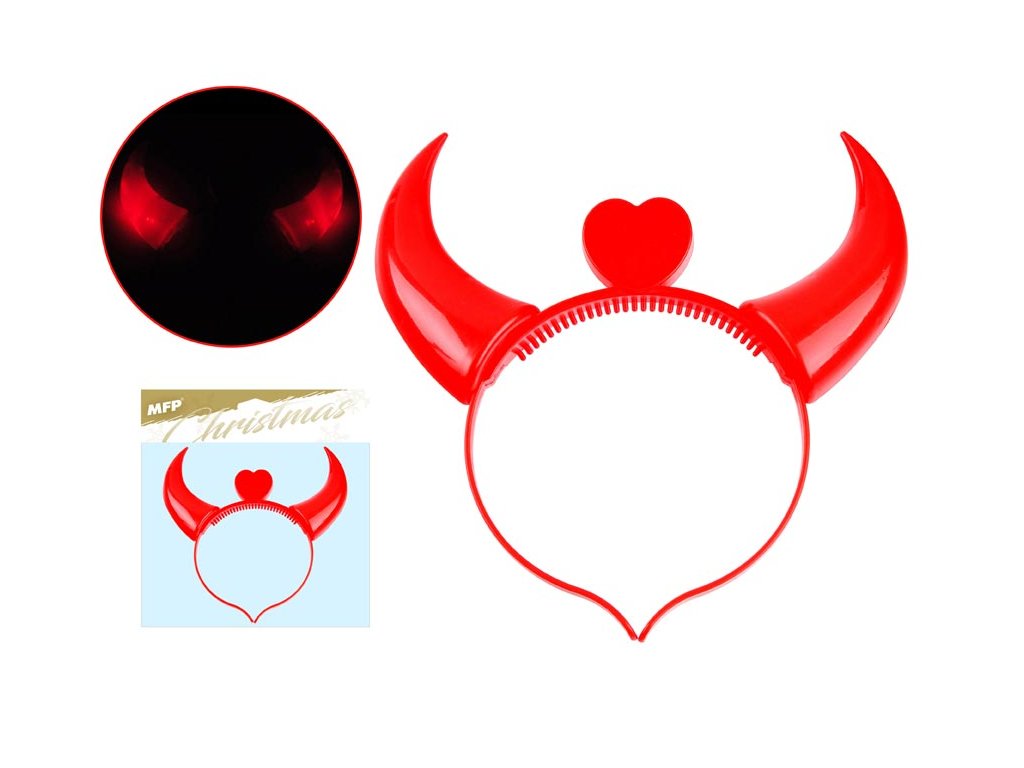Svietiace čertovské rohy so spínačom s možnosťou vypnúť a zapnúť. Rohy napájajú dve gombíkové batérie LR41. Batérie sa môžu vymeniť a sú súčasťou balenia. Vhodné pre deti i pre dospelých.Dodatočné parametre