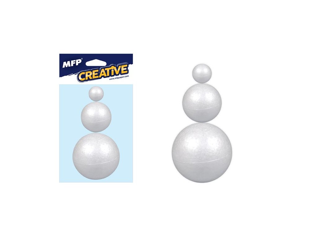 Polystyrénové gule 3 veľkostí, vhodné napríklad na výrobu vianočnej dekorácie v podobe snehuliaka. Priemer: 2, 4, 6 cm Počet kusov v balení: 3 ksDodatočné parametre
