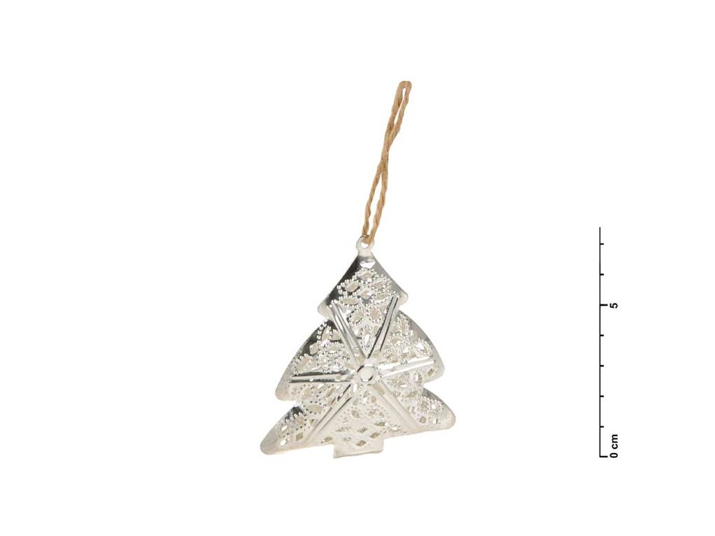 Vianočná kovová dekorácia 3D stromček vyrezávaný v striebornej farbe so závesom. Vianoce sú sviatkami pohody a pokoja, a preto je potrebné sa na ne poriadne pripraviť. Vyzdobte si domov touto krásnou kovovou dekoráciou, ktorá Vám navodí pocit prichádzajúcich Vianoc. Táto vianočná ozdoba je opatrená očkom a povrázkom na zavesenie. Môžete použiť na ozdobenie vianočného stromčeka, zavesiť na dvere, okno a skrášliť tak Vaše bývanie. Farba: strieborná Veľkosť: 70 mm Uvedená cena je za 1 ks.Dodatočné parametre