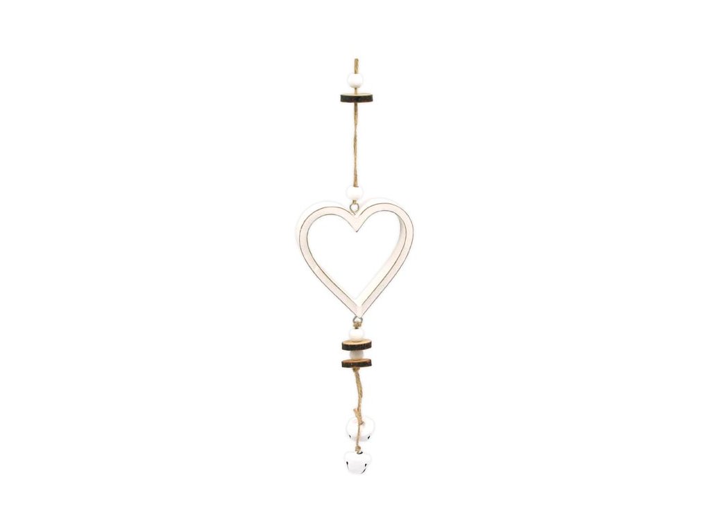 Vianočná drevená dekorácia srdca so závesom v bielej farbe. Súčasťou sú rolničky a korálky. Vyrobené z preglejky a prírodných materiálov. Táto dekorácia je opatrená očkom a povrázkom na zavesenie. Vhodná na zavesenie do dverí, do okna alebo na stenu. Dodávame v sáčku so závesom. Uvedená cena je za 1 ks.Dodatočné parametre