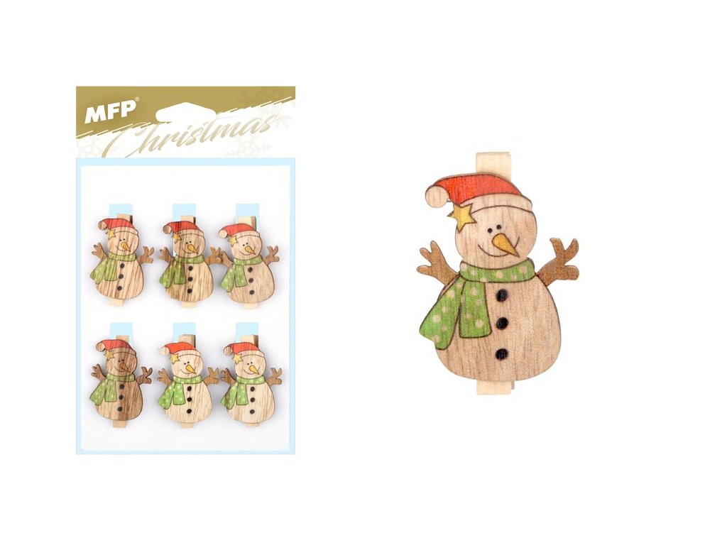 MFP 8885702 Štipec drevený snehuliak 6ks 4cm ZC171172