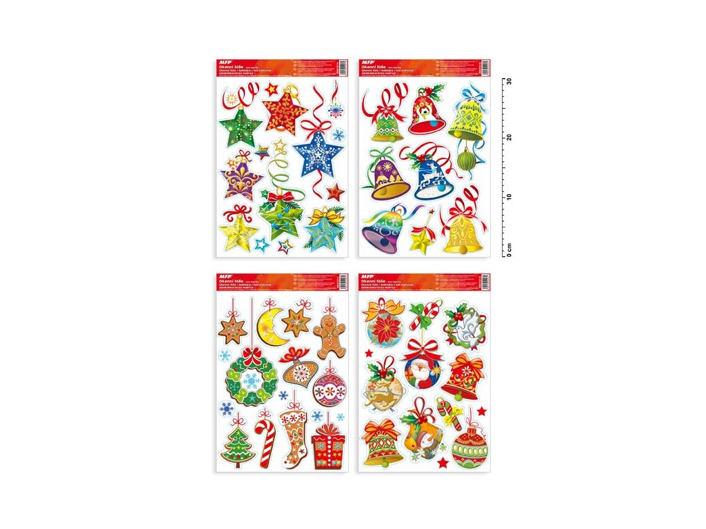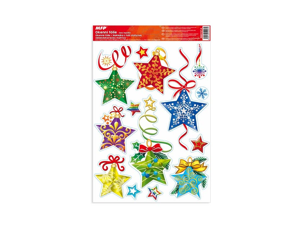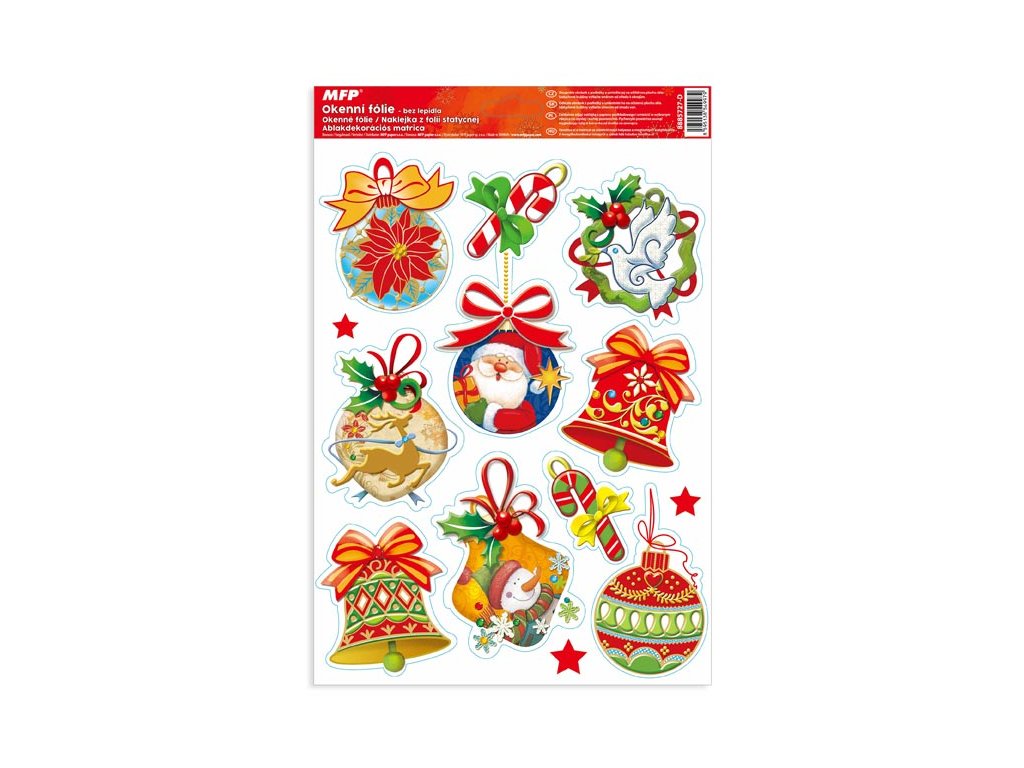 Vianočná okenná fólia s motívmi farebných vianočných ozdôb s trblietkami. Vyzdobte si okno týmito krásnymi samolepkami na okno. Vytvorí Vám kúzelnú atmosféru domova. Vhodné sú na akékoľvek hladké plochy, napríklad sklo, výlohy, zrkadlá alebo kachličky. Čisté, bez lepidla a opakovane použiteľné. NÁVOD: 1. Odlepte z podložky obrázok a umiestnite na čisté, prípadne navlhčené sklo stranou, ktorá bola na podložke. 2. Obrázok elektrostaticky priľne. 3. Fólia sa ľahko zlúpne a dá sa premiestniť. Dodávame v mixe po 4 ks podľa skladovej zásoby. Uvedená cena je za 1 ks.Dodatočné parametre