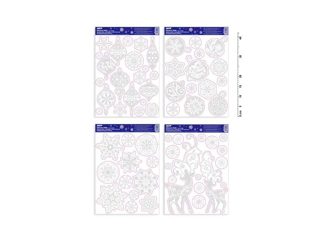 Okenná fólia vianočné biele ozdoby s flitrom. Vyzdobte si okno týmito krásnymi samolepkami. Vytvoria vám čarovnú atmosféru domova. NÁVOD: 1. Odlepte z podložky obrázok a umiestnite ho na čisté, prípadne navlhčené sklo tou stranou, ktorá bola na podložke. 2. Obrázok elektrostaticky priľne. 3. Fólia sa dá ľahko odlepiť a premiestniť. Dodávame v mixe po 4 ks podľa skladových zásob. Uvedená cena je za 1 ks.Dodatočné parametre