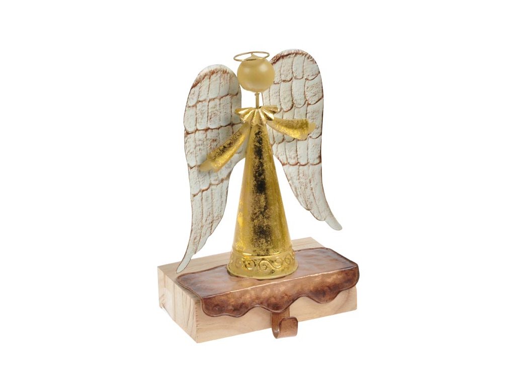 MFP 8885793 Anjel plech + drevo s háčikom 24cm - zlatý
