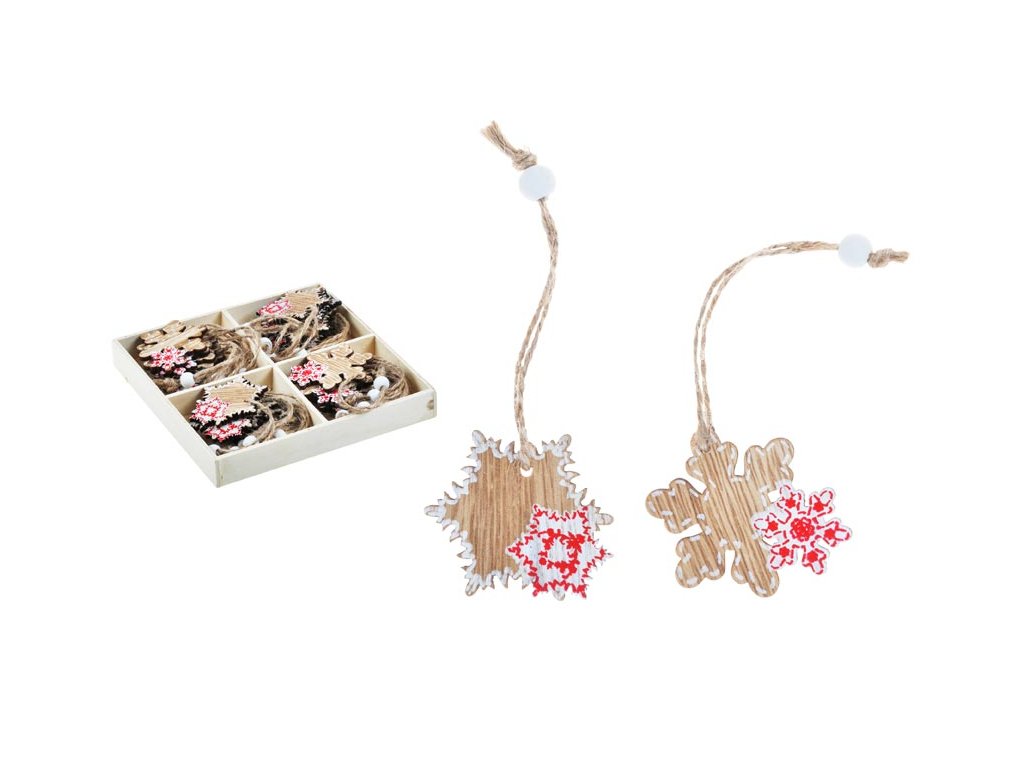 Set vianočných ozdôb 24 ks. Vianoce sú sviatkami pohody a pokoja, a preto je potrebné sa na ne poriadne pripraviť. Vyzdobte si domov touto krásnou dekoráciou, ktorá Vám navodí pocit prichádzajúcich Vianoc. Vianočné závesné ozdoby sú dokonalým doplnkom do každého interiéru. Táto vianočná ozdoba je opatrená korálkou, očkom a povrázkom na zavesenie. Môžete použiť na ozdobenie vianočného stromčeka, zavesiť na dvere, okno a skrášliť tak Vaše bývanie. SET OBSAHUJE: - 24 ks vianočných drevených ozdôb (vločky) Dodávame v drevenej krabičke. Uvedená cena je za 1 balenie.Dodatočné parametre
