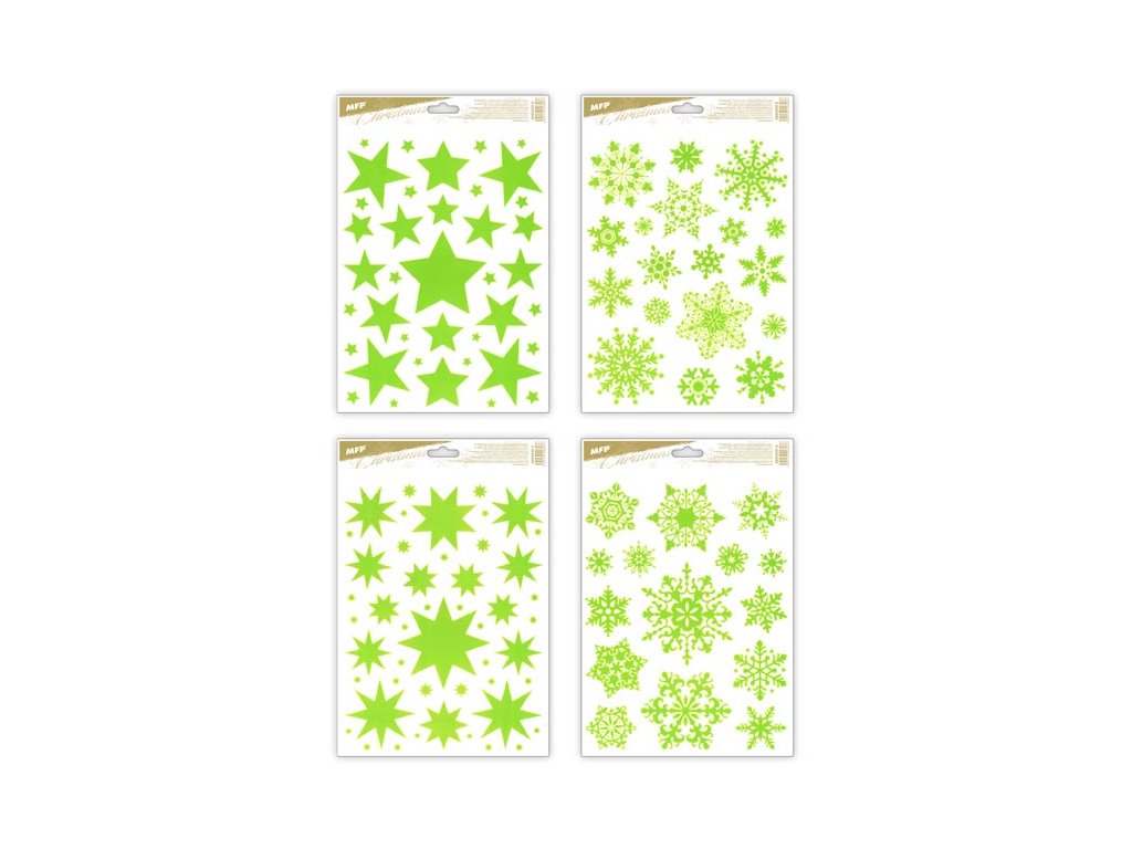 Vianočná okenná fólie svietiaca snehové vločky a hviezdy. Vyzdobte si okno týmito krásnymi samolepkami. Vytvorí Vám kúzelnú vianočnú atmosféru u Vás doma. Sú vhodné na akékoľvek hladké plochy, napríklad sklo, výlohy, zrkadlá alebo kachličky. Čisté, bez lepidla a opakovane použiteľné. NÁVOD: 1. Zlúpnite z podložky obrázok a umiestnite na čisté, prípadne navlhčené sklo stranou, ktorá bola na podložke. 2. Obrázok elektrostaticky priľne. 3. Fólia sa ľahko zlúpne a dá sa premiestniť. Dodávame v mixe po 4 ks podľa skladovej zásoby. Uvedená cena je za 1 ks.Dodatočné parametre