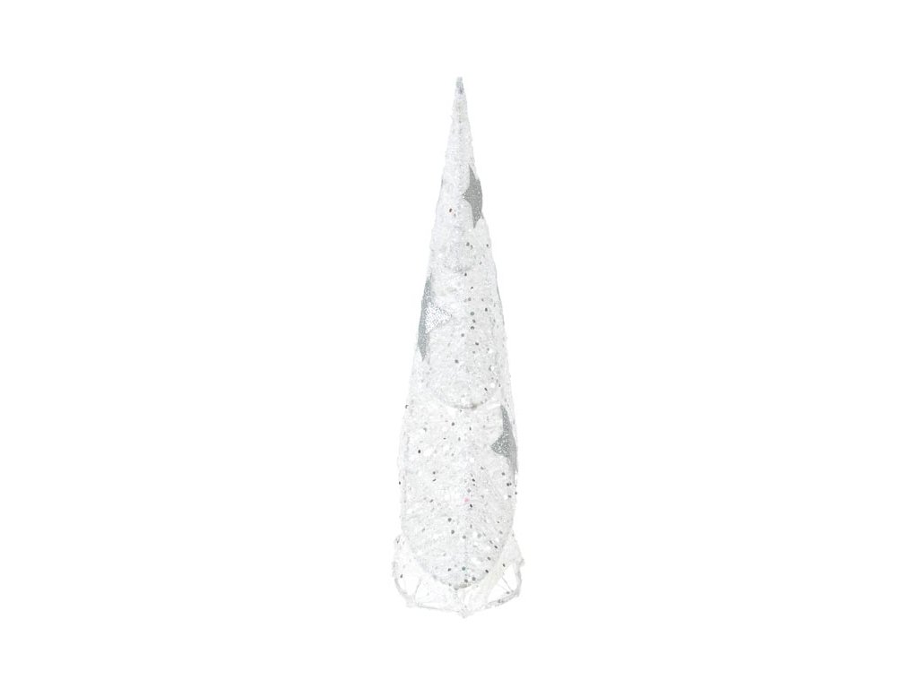 Vianočná dekorácia v tvare bieleho, vianočného stromčeka so striebornými hviezdičkami. Vianočná dekorácia, ktorá skrášli interiér aj exteriér. Tento stromček si môžete ozdobiť podľa svojej fantázie. Uvedená cena je za 1 ks.Dodatočné parametre