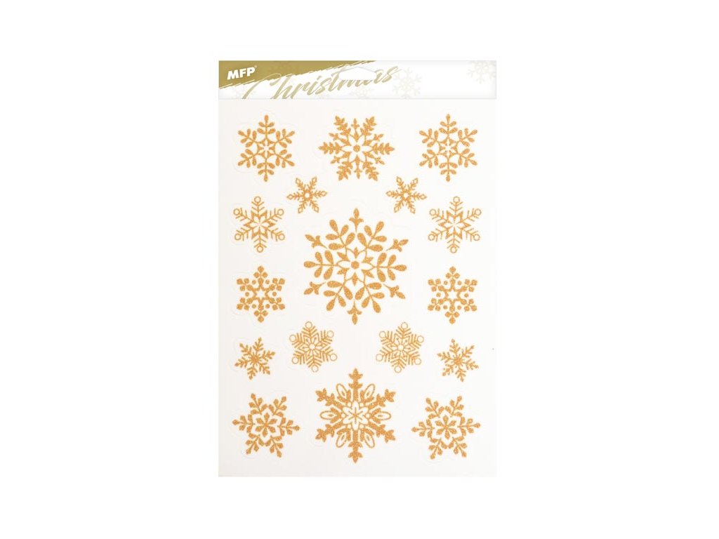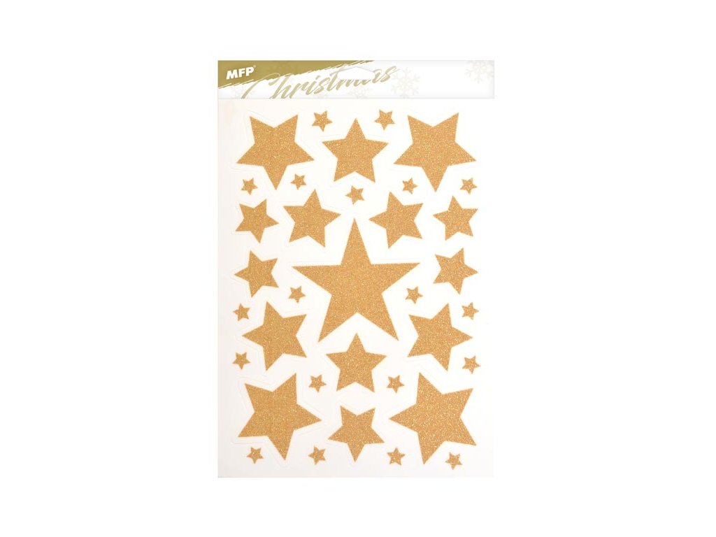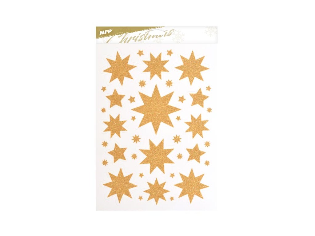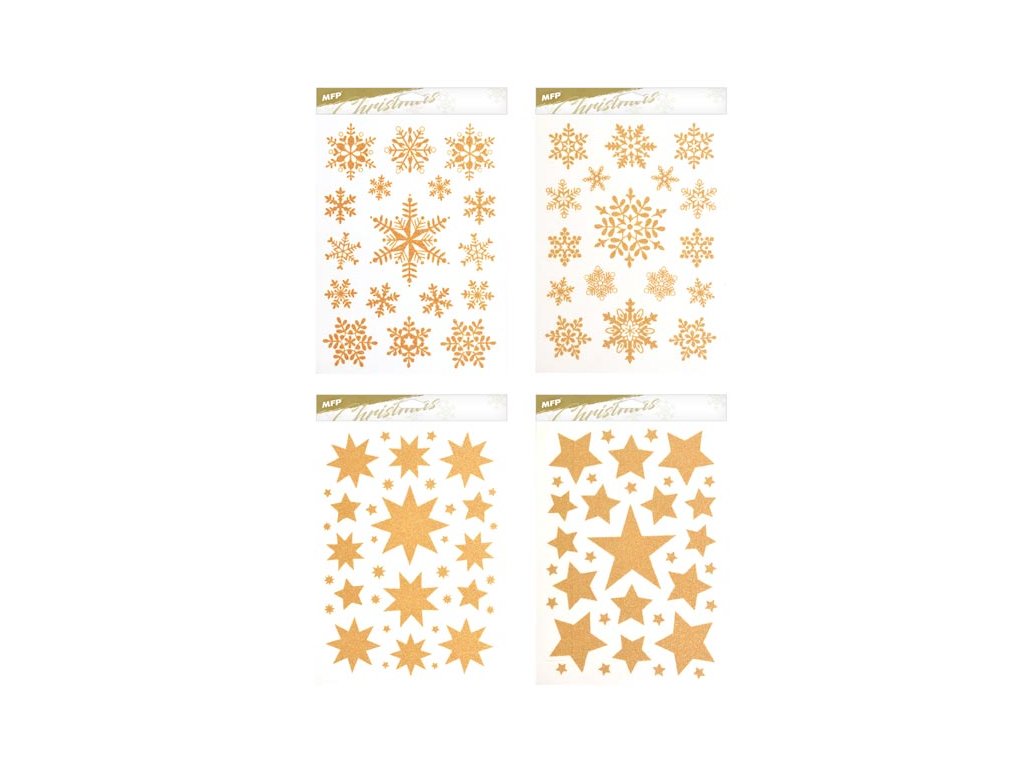 Vianočná okenná fólia glitrová s motívmi zlatých hviezd a vločiek. Pomocou okenných fólií si veľmi ľahko a rýchlo vytvoríte vianočnú atmosféru na celé sviatky. Fólie sa ľahko odlepujú a nalepujú a nezanechávajú za sebou žiadne stopy lepidla. NÁVOD: 1. Odlepte z podložky obrázok a umiestnite na čisté, prípadne navlhčené sklo stranou, ktorá bola na podložke. 2. Obrázok elektrostaticky priľne. 3. Fólia sa ľahko zlúpne a dá sa premiestniť. Dodávame v mixe po 4 ks podľa skladovej zásoby. Uvedená cena je za 1 ks.Dodatočné parametre