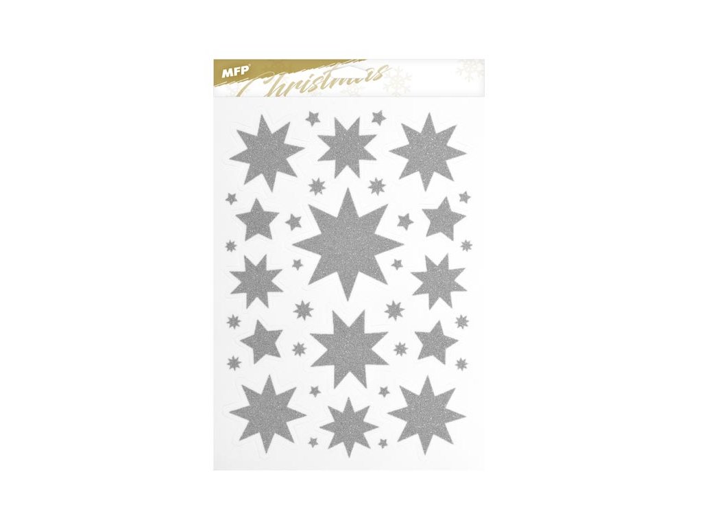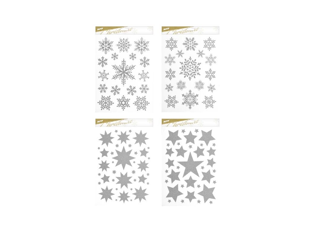 Vianočná okenná fólia glitrová s motívmi strieborných hviezd a vločiek. Pomocou okenných fólií si veľmi ľahko a rýchlo vytvoríte vianočnú atmosféru na celé sviatky. Fólie sa ľahko odlepujú a nalepujú a nezanechávajú za sebou žiadne stopy lepidla. NÁVOD: 1. Odlepte z podložky obrázok a umiestnite na čisté, prípadne navlhčené sklo stranou, ktorá bola na podložke. 2. Obrázok elektrostaticky priľne. 3. Fólia sa ľahko zlúpne a dá sa premiestniť. Dodávame v mixe po 4 ks podľa skladovej zásoby. Uvedená cena je za 1 ks.Dodatočné parametre