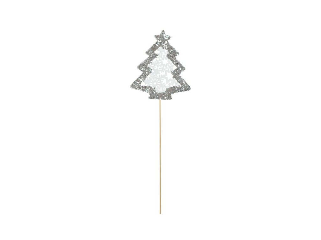 Vianočná dekorácia zápich vianočný stromček v bielej farbe s trblietkami. Touto obľúbenou dekoráciou ozdobte kvetináč alebo iný mäkký povrch. Vhodná do interiéru alebo exteriéru. Materiál: preglejka Dĺžka zápichu: 290 mm Výška postavičky: 70 mm Motív: vianočný stromček s trblietkami Uvedená cena je za 1 ks.Dodatočné parametre