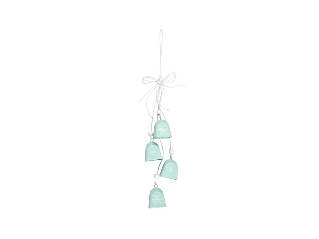 Vianočné zvončeky v zelenej farbe so závesom. Záves obsahuje 4 zvončeky. V hornej časti je slučka so šnúrkou, ktorá umožňuje jednoduché zavesenie. Dekoráciu môžete zavesiť na dvere, okno alebo inak skrášliť svoj domov. Dĺžka: 370 mm Výška zvončeka: 35 mm Cena je uvedená za 1 ks.Dodatočné parametre