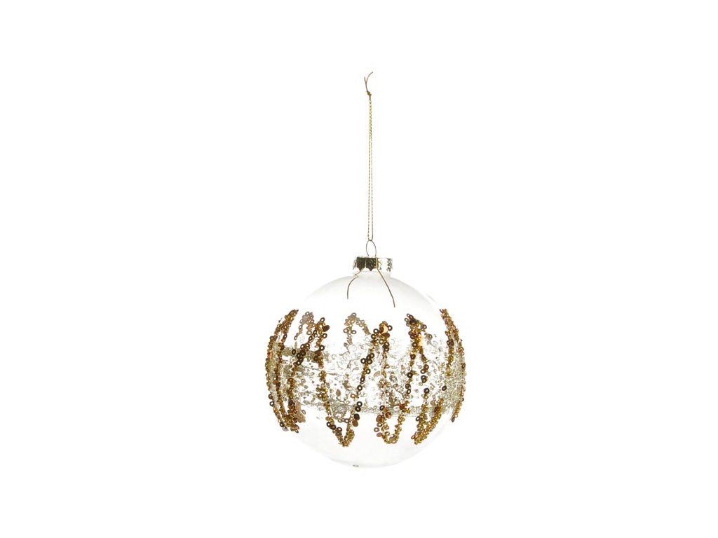 Číra, sklenená banka na vianočný stromček so zlatým dekorom. Táto vianočná ozdoba je ideálna ako výzdoba do interiérov. Banka je opatrená šnúrkou na zavesenie. Uvedená cena je za 1 ks.Dodatočné parametre