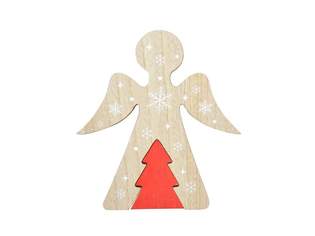 Drevená dekorácia anjel s červeným stromčekom dva v jednom. Krásne ozdobí váš interiér alebo exteriér a umocní vianočnú atmosféru. Vďaka tomu, že anjel je vyrobený z dreva, nemusíte sa obávať, že sa rýchlo zlomí, čím je zabezpečené dlhodobé používanie. Dreveného anjela môžete darovať aj ako darček svojim príbuzným alebo blízkym. Materiál: drevo Uvedená cena je za 1 ks.Dodatočné parametre
