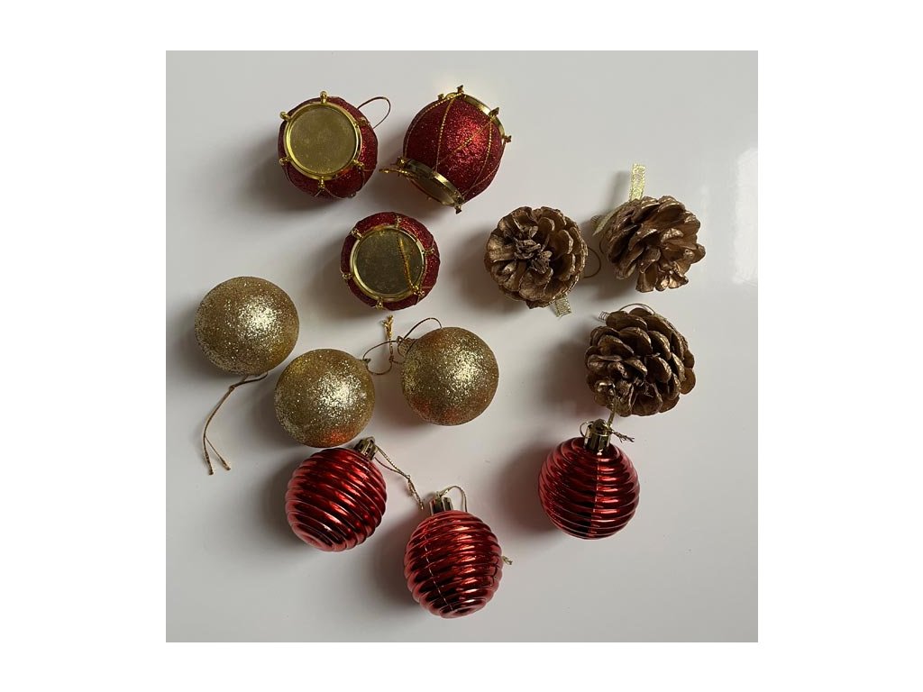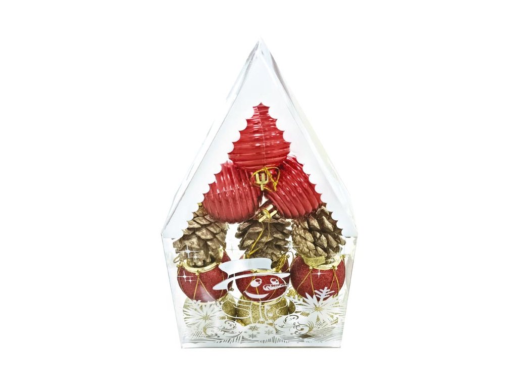 Skrášlia váš vianočný stromček a vytvoria vianočnú atmosféru. Ľahko sa zavesia na stromček a sú vhodné i k zdobeniu vencov a vianočných svietnikov. Banky sú balené v praktickom plastovom obale v tvare domčeka s vianočným vzorom. Balenie obsahuje: 6 kusov červených baniek, 3 ks zlatých a 3 šušky. Priemer: 5 cmDodatočné parametre