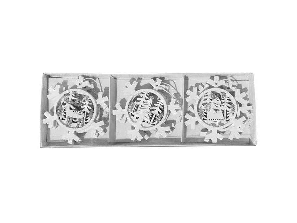 Biele drevené ozdoby s trblietkami. Krásna vianočná drevená dekorácia v dizajne bielych snehových vločiek slúži ako dekorácia do interiéru aj exteriéru. Táto krásna dekorácia tak doladí vianočnú atmosféru. Dekorácia má šnúrku na zavesenie. Balenie obsahuje: - 9 ks dekorácií Veľkosť: 75 mm Uvedená cena je za 1 balenie.Dodatočné parametre