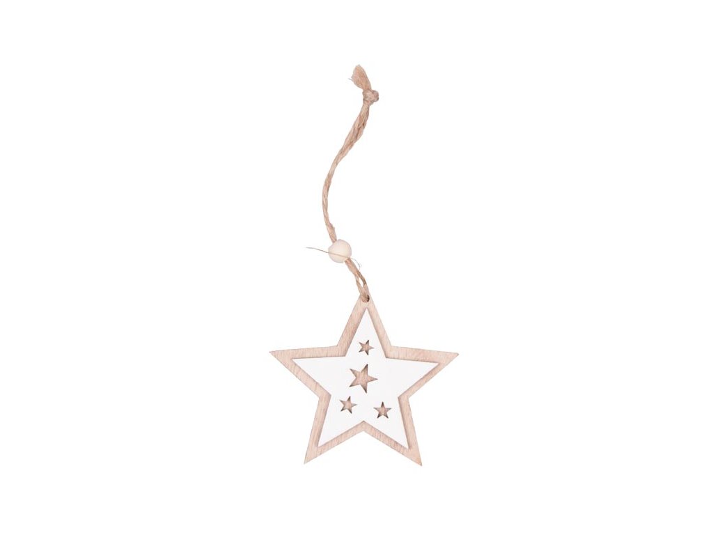 Vianočná drevená dekorácia hviezda na zavesenie. Krásna závesná hviezda je vybavená šnúrkou s korálkou na zavesenie. Môžete ju zavesiť na stromček, do okna alebo na dvere. Skrášli váš interiér a umocní vianočnú atmosféru. BALENIE OBSAHUJE: - 2 ks hviezd Materiál: drevo Veľkosť: 75 mm Uvedená cena je za 1 balenie.Dodatočné parametre