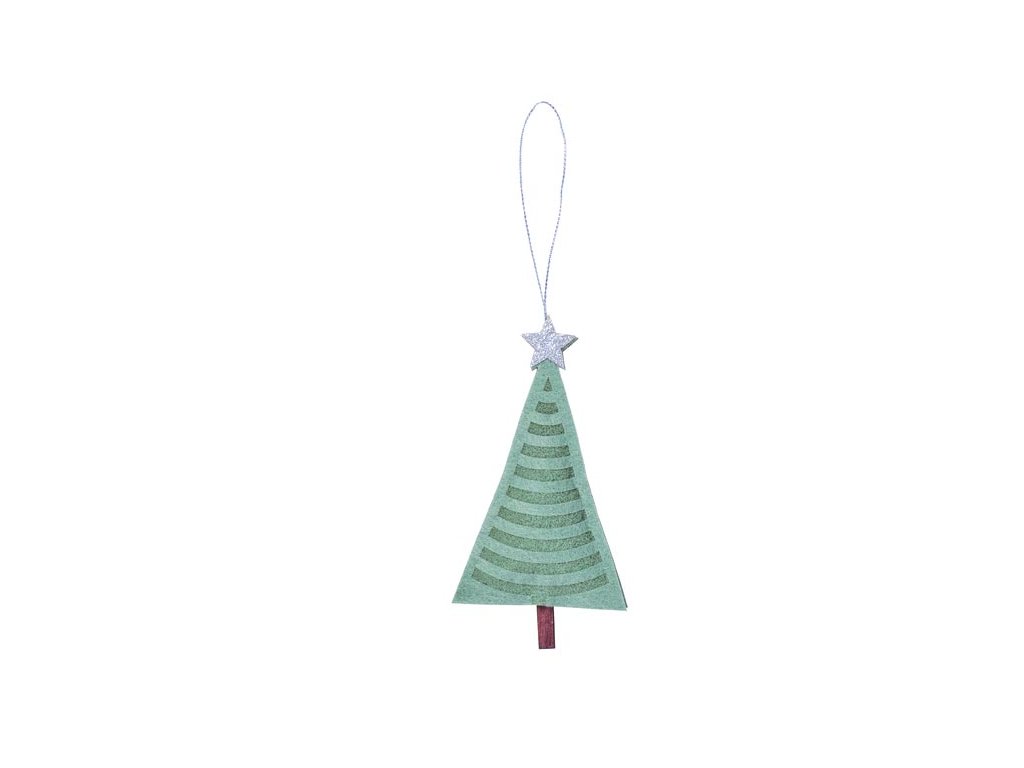 Dekorácia na vianočný stromček v zelenej farbe s hviezdou na zavesenie. Krásny plstený stromček so šnúrkou na zavesenie. Môžete ho zavesiť na stromček, do okna alebo na dvere. Skrášli váš interiér a umocní vianočnú atmosféru. Veľkosť: 65 mm Uvedená cena je za 1 ks.Dodatočné parametre