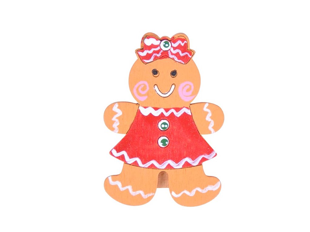 Drevený štipec s motívom vianočného perníka (dievčatko). Plánujete pred Vianocami stráviť tvorivé relaxačné popoludnie a vyzdobiť si byt? Potom určite neváhajte a kúpte si tieto krásne drevené dekorácie, ktoré navodia príjemnú vianočnú atmosféru. Môžete ich použiť na ozdobenie stromčeka, na vianočný veniec alebo na pripevnenie menovky na darček. Vyrobené z preglejky. Balenie obsahuje: - 18 ks štipcov (perníčky) Uvedená cena je za 1 balenie.Dodatočné parametre