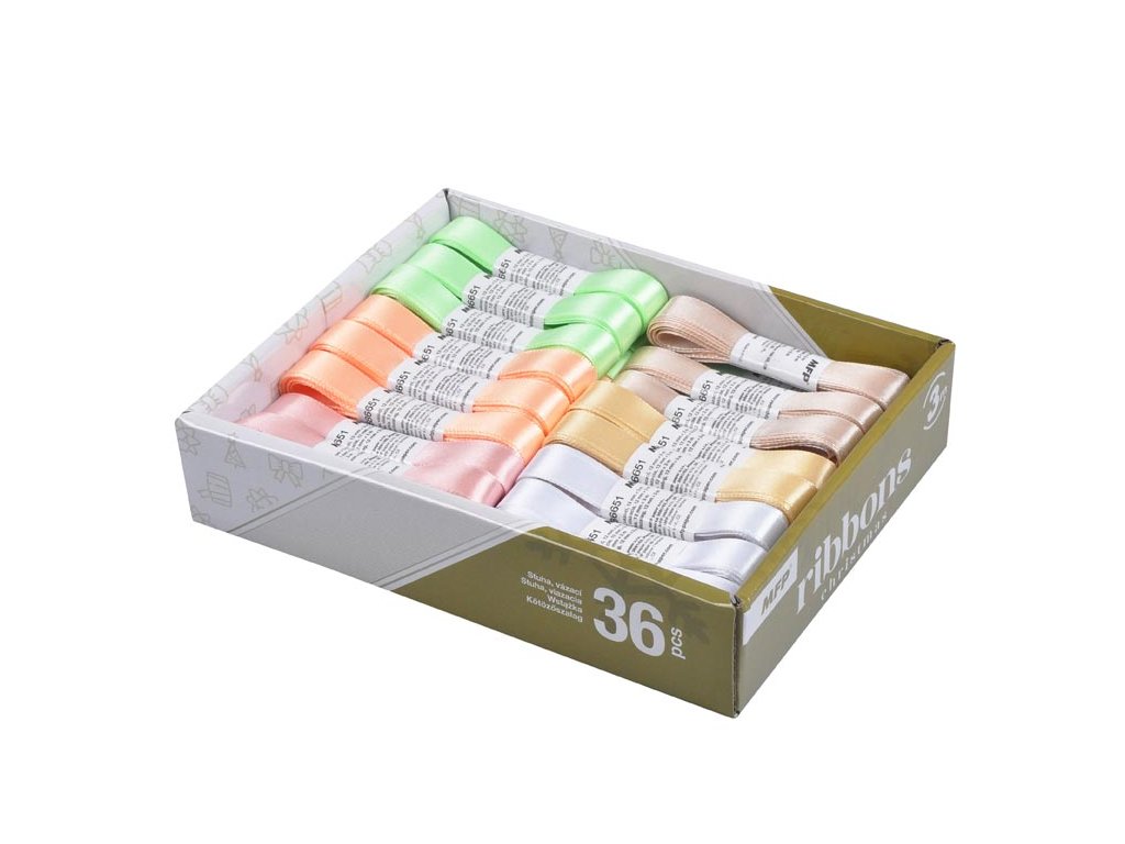 Saténová stuha – jemný detail Saténová stuha dokáže pozdvihnúť každý darček aj dekoráciu. Vďaka dĺžke 3 m a šírke 1,2 cm sa hodí na viazanie mašlí, zdobenie kvetov či elegantné doplnky pri sviatočných príležitostiach. Lesklý saténový povrch dodá vášmu aranžmánu slávnostný nádych, zatiaľ čo jednoduchá manipulácia a tvarová stálosť zabezpečia, že stuha bude vždy pôsobiť dokonale. BALENIE OBSAHUJE: - 36 stúh Dĺžka: 3 m Farba: mix farieb (zelená, marhuľková, ružová, biela, béžová, zlatá, svetlohnedá) Všetkých 36 ks je balených v krabici. Uvedená cena je za 1 ks.Dodatočné parametre