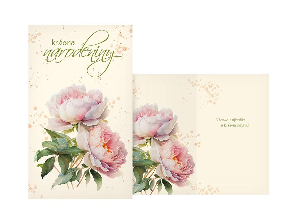 Blahoželanie srdečné k narodeninám s obrázkom pivoniek. Oslavy narodenín patria k výnimočným a príjemným okamihom v živote. Potešte oslávenca a spolu s darčekom mu venujte originálne a krásne prianie, ktoré mu bude pripomínať túto radostnú udalosť. Text na prednej strane: krásne narodeniny Text vo vnútri priania: Všetko najlepšie a krásnu oslavu! Papier: pohľadnicový kartón Prianie je balené v sáčku, súčasťou balenia je aj listová obálka. Uvedená cena je za 1 ks.Dodatočné parametre