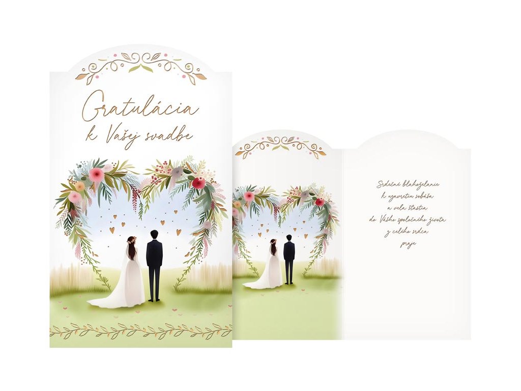 Nech je váš príbeh lásky nekonečný – elegantné svadobné blahoželanie! Svadba je začiatok novej kapitoly, kde sa sny premieňajú na skutočnosť a srdcia bijú v jednom rytme. Darujte novomanželom prianie, ktoré vyjadrí všetku vašu radosť a úprimné blahoželanie k ich veľkému dňu. Text na prednej strane: Gratulácia k Vašej svadbe Text vo vnútri priania: Srdečné blahoželanie k uzavretiu sobáša a veľa šťastia do Vášho spoločného života z celého srdca praje Papier: pohľadnicový kartón 240 g Prianie je balené v sáčku, súčasťou balenia je aj listová obálka. Uvedená cena je za 1 ks.Dodatočné parametre