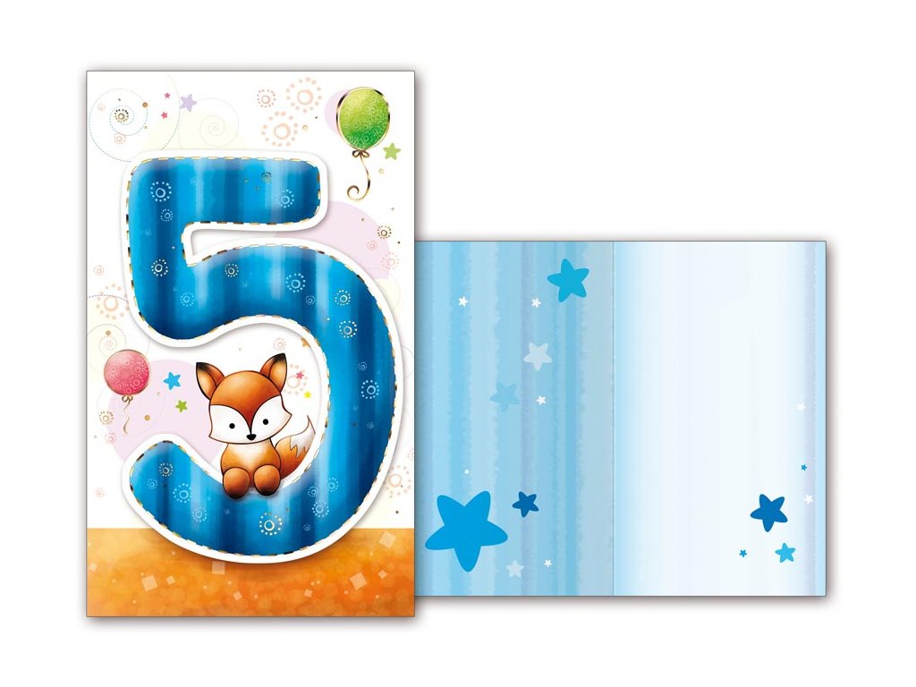 Detské blahoželanie k 5. narodeninám s obrázkom. Oslavy narodenín patria k výnimočným a príjemným okamžikom v živote. Potešte oslávenca a spolu s darčekom mu venujte aj originálne a krásne blahoželanie, ktoré mu bude pripomínať túto radostnú udalosť. Blahoželanie je s obrázkom líšky. Text na prednej strane: 5 Text vo vnútri: Bez textu Papier: pohľadnicový kartón 240 g Blahoželanie je vo vrecúšku spolu s listovou obálkou. Uvedená cena je za 1 ks.Dodatočné parametre