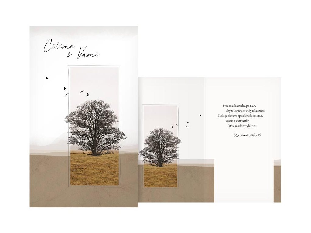 Vyjadrenie sústrasti, kondolencie s textom. Úmrtie blízkej osoby je vždy tragická udalosť. Vyjadrite kondolenciou úprimnú sústrasť a súcit pozostalým. Kondolenčný prejav a smútočné kvetiny vám zaistia dôstojné rozlúčenie s vaším blízkym človekom.. Text na prednej strane: Cítime s vami Text vo vnútri blahoželania: Studená slza stiekla po tvári, chýba úsmev, čo vždy tak zažiaril. Ťažké je slovami opísať chvíľu smutnú, zostanú spomienky, ktoré nikdy nevyblednú. Úprimnú sústrasť Papier: pohľadnicový kartón 240 g Želanie ja balené vo vrecúšku, súčasťou balenia je listová obálka. Uvedená cena je za 1 ks.Dodatočné parametre