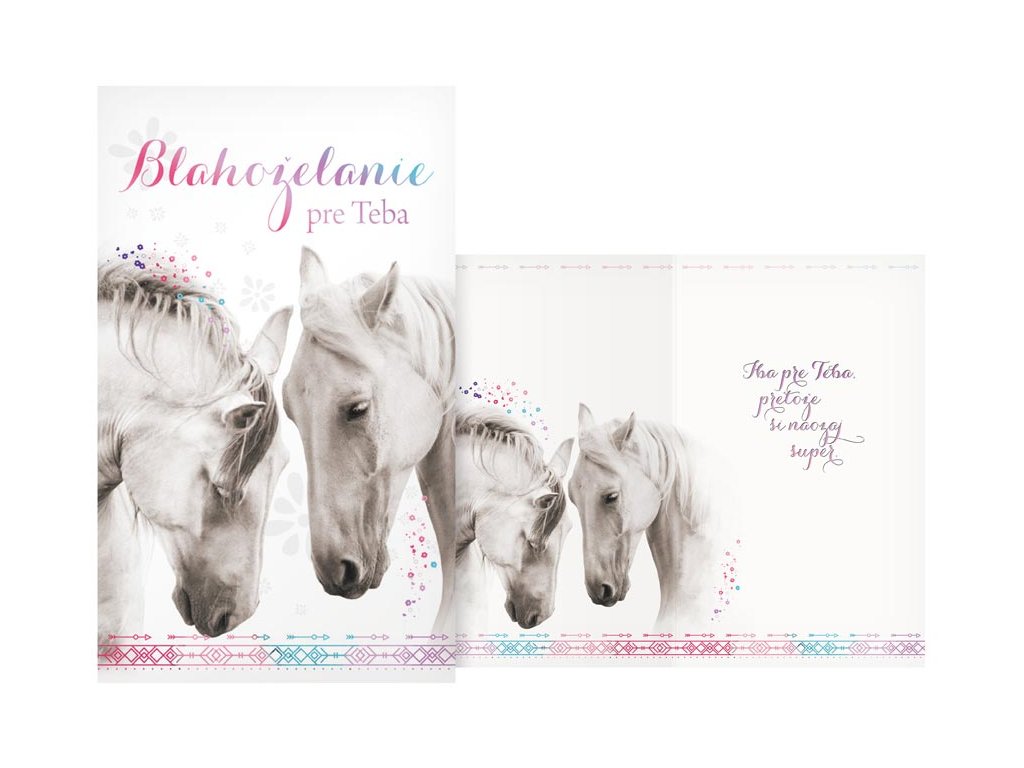 Blahoželanie detské. Krásne blahoželanie pre deti k narodeninám s obrázkom koní. Toto prianie urobí určite veľkú radosť každej malej slečne. Text na prednej strane: Blahoželanie pre Teba Text vo vnútri želania: Iba pre Teba, pretože si naozaj super. Papier: pohľadnicový kartón 240 g Želanie je balené vo vrecúšku, súčasťou je i listová obálka. Uvedená cena je za 1 ks.Dodatočné parametre