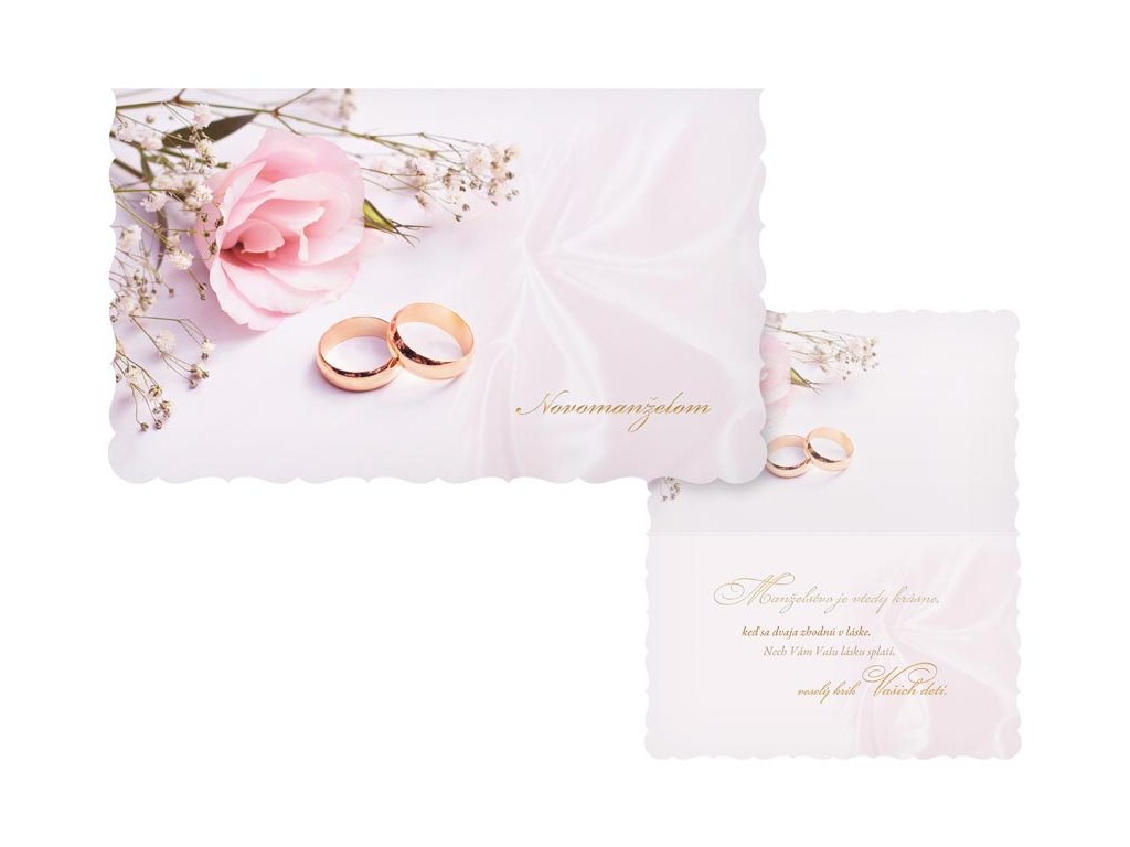 Svadobné blahoželania. Svadba je príjemná a mimoriadna udalosť a je začiatkom novej etapy života. Medzi svadobnými darmi by nikdy nemalo chýbať aj blahoželanie novomanželom. Urobte radosť novomanželom a venujte im blahoželanie k ich zväzku, vďaka ktorému si vždy pripomenú krásne začiatky ich manželstva. Text na prednej strane blahoželania: Novomanželom Text vo vnútri blahoželania: Manželstvo je vtedy krásne, keď sa dvaja zhodnú v láske. Nech Vám Vašu lásku splatí, veselý krik Vašich detí. Na Vašej spoločnej ceste životom, všetko dobré želá Papier: pohľadnicový kartón 240 g Želanie ja balené vo vrecúšku, súčasťou balenia je listová obálka. Uvedená cena je za 1 ks.Dodatočné parametre