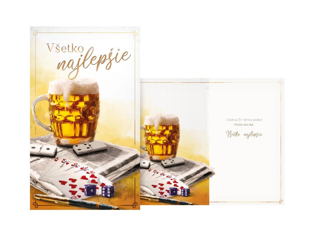 Sredčné blahoželanie k narodeninám s obrázkom pollitra piva. Oslavy narodenín patria k výnimočným a príjemným okamihom v živote. Potešte oslávenca a spolu s darčekom mu venujte originálne a krásne blahoželanie, ktoré mu bude pripomínať túto radostnú udalosť. Text na prednej strane: Všetko najlepšie Text vo vnútri priania: Nech sa Ti v živote podarí všetko ako má. Všetko najlepšie. Papier: pohľadnicový kartón 240 g Prianie je balené v sáčku, súčasťou balenia je aj listová obálka. Uvedená cena je za 1 ks.Dodatočné parametre