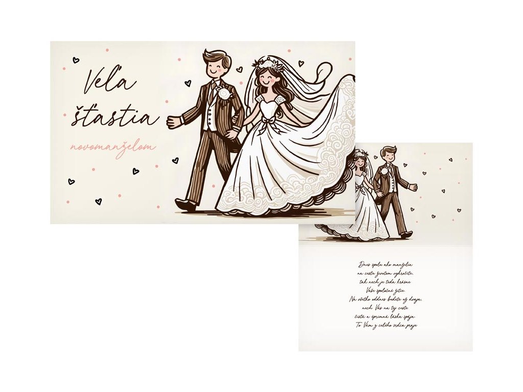 Dnes spolu ako manželia na cestu životom vykročíte, tak nech je teda krásne Vaše spoločné žitie. Na všetko oddnes budete už dvaja, nech Vás na tej ceste čistá a úprimná láska spája. To Vám z celého srdca prajeDodatočné parametre