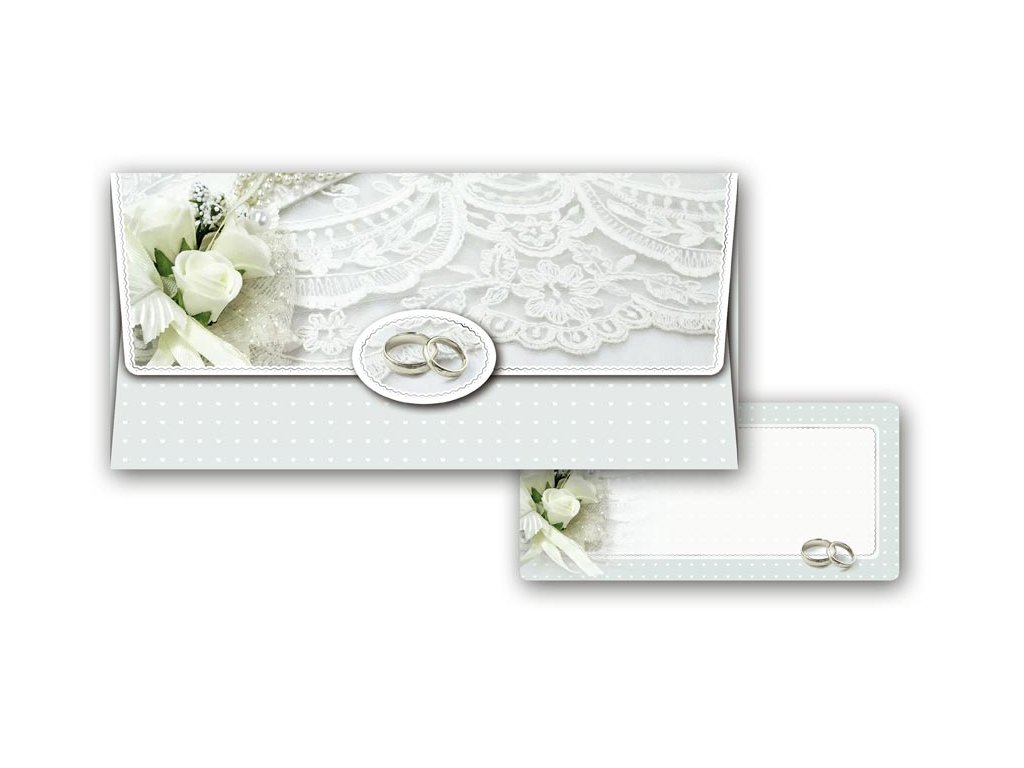 Darčeková obálka na peniaze so svadobným motívom. Vo vnútri je kartička bez textu, na ktorú môžete napísať venovanie. Dodávame v plastovom sáčku so závesom. Uvedená cena je za 1 ks.Dodatočné parametre