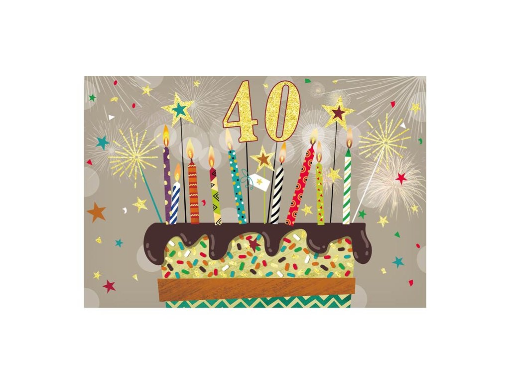 Pohľadnica k 40. narodeninám bez textu. Pohľadnica je s obrázkom torty, sviečok a prskaviek. Oslavy narodenín sú jedným z výnimočných a príjemných okamihov v živote. Potešte oslávenca a spolu s darčekom mu darujte originálne a krásne pohľadnice, ktoré mu bude pripomínať túto radostnú udalosť. Text vo vnútri: Bez textu Papier: pohľadnicový kartón Pohľadnica je zabalená v sáčku, súčasťou balenia je listová obálka. Uvedená cena je za 1 ks.Dodatočné parametre
