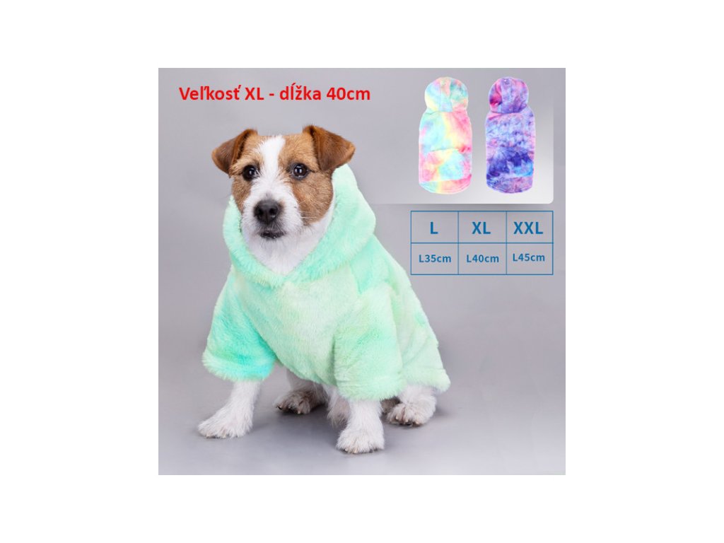 Mikina Tie-Dye 2 pre psa Nobleza veľkosť XL je mikina s kapucňou v trendy modernom štýle vyrobená metódou batikovania. Zabezpečí dostatok tepla pre Vášho psa počas studeného počasia.Dodatočné parametre